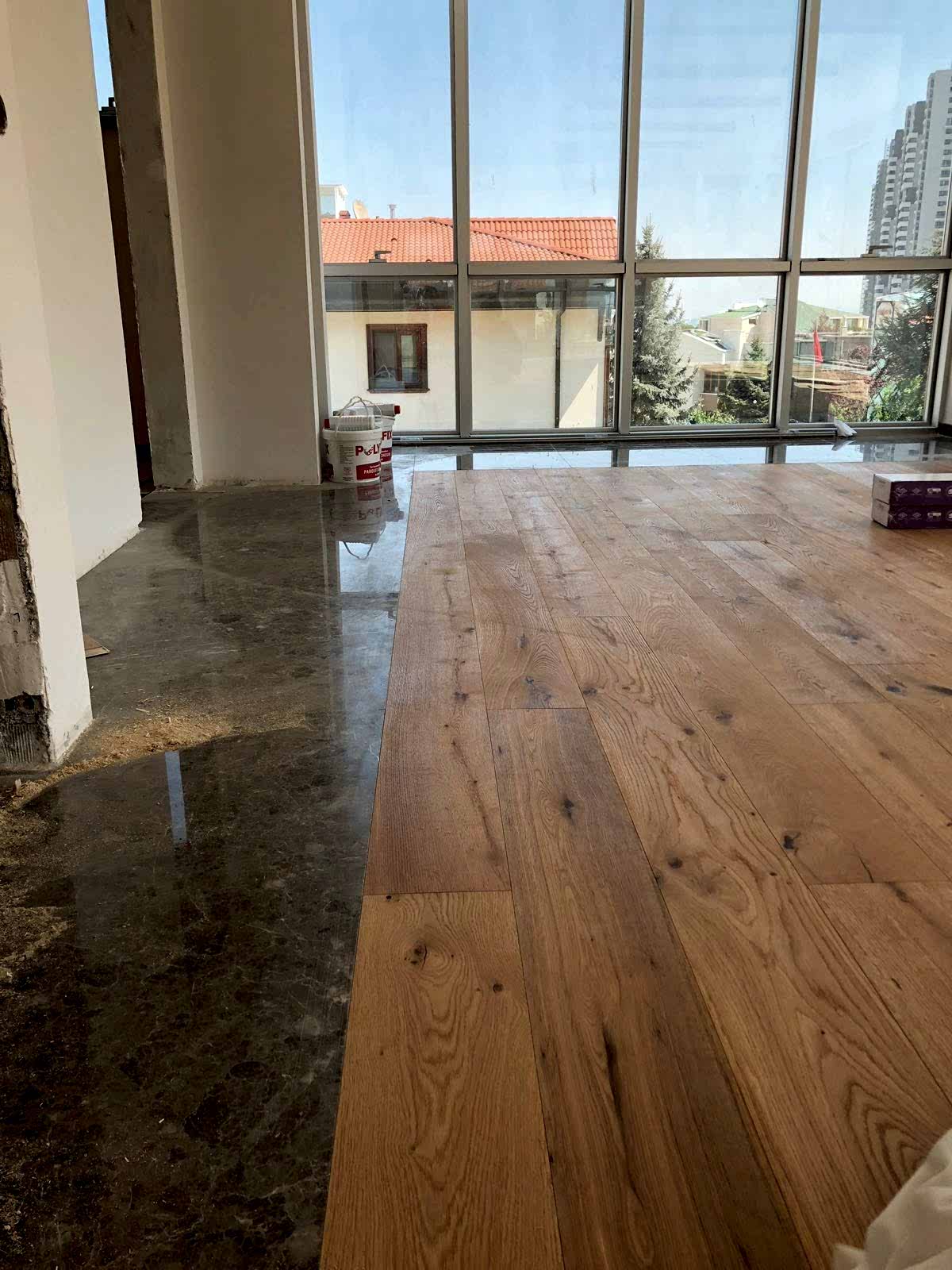 Meşe Yağlı Fırçalı Derzli Masif Parke Uygulamamız • Via Flat İş Merkezi Söğütözü