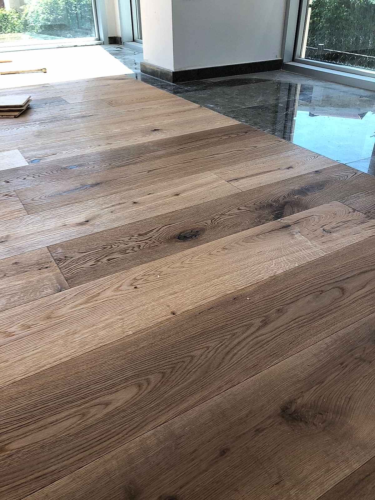 Meşe Budaklı Ham Masif Parke Uygulamamız • Kargen Villaları İncek